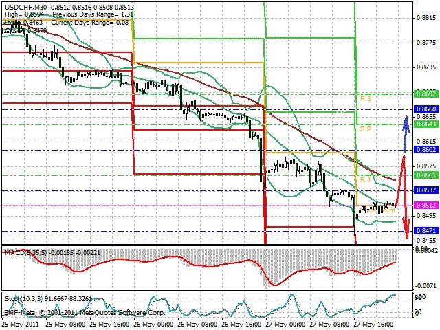 Předpokládaný pohyb pro dnešní den SHORT. Případné vstupy do obchodu z hladiny 0.86 s předpokládaným cílem 0.8465, případně až 0.843. Proražení hladiny 0.86 může vést k pohybu s pravděpodobným cílem 0.865 až 0.869.