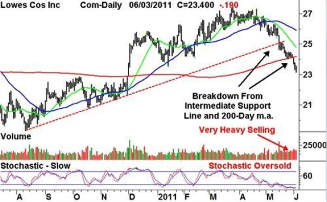 Sektor stavebnictví na tom není ve Spojených státech zrovna nejlépe. Firma Lowe’s tím trpí a akcie si procházejí složitým obdobím. Půjčky na domy a na novou výstavbu se nezlepšují a ani během léta by neměla nastat zásadní revoluce. Do konce léta by akcie společnosti měly klesnout k 20 dolarům. Do konce roku by to měl být pokles až na 10 dolarů za akcii.
