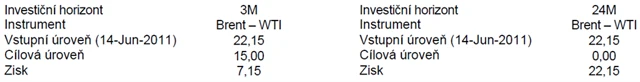 Podle názoru ČS je však současné rozšíření spreadu přehnané a dočasné. Proto je současná úroveň vhodná k otevření pozice long WTI/short brent (buď přímo přes futures, nebo přes speciální deriváty).