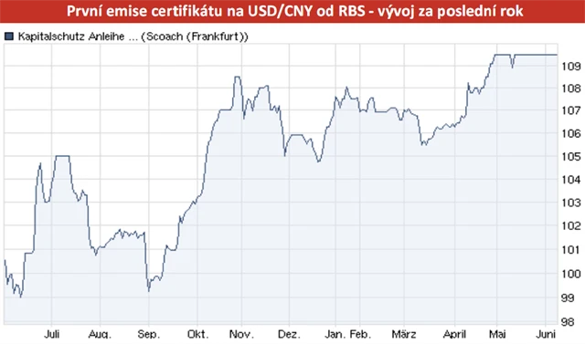 S uspokojivým řešením přišla až v roce 2007 banka RBS, která emitovala první garantované investiční certifikáty vydělávající na posílení CNY vůči USD. Jednalo se o dvě emise certifikátů s mírně rozdílnými parametry. O jejich úspěšnosti svědčí fakt, že ačkoli jsou certifikáty splatné až na konci roku 2012, jsou obě jejich emise již více než rok zcela vyprodané.
