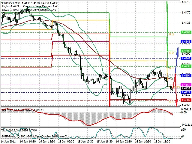 Předpokládaný pohyb pro dnešní den SHORT. Případné vstupy do obchodu z hladiny 1.4205 s předpokládaným cílem 1.4065, případně až 1.4025. Proražení hladiny 1.4215 může vést k pohybu s pravděpodobným cílem 1.4265 až 1.4325.