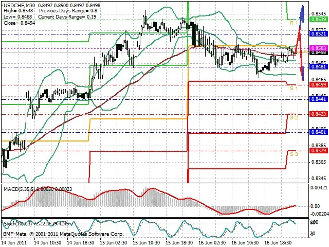 Předpokládaný pohyb pro dnešní den SHORT. Případné vstupy do obchodu z hladiny 0.853 s předpokládaným cílem 0.847, případně až 0.844. Proražení hladiny 0.853 může vést k pohybu s pravděpodobným cílem 0.855 až 0.8565.