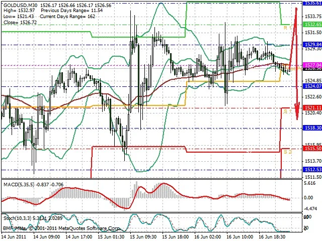 Předpokládaný pohyb pro dnešní den SHORT. Případné vstupy do obchodu z hladiny 1 535 s předpokládaným cílem 1 520, případně až 1 514. Proražení hladiny 1 535 může vést k pohybu s pravděpodobným cílem 1 545 až 1 550.
