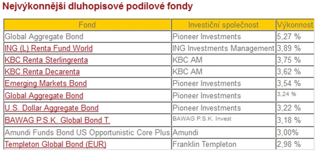 Ani nejistý vývoj amerických veřejných financí a komplikovaná jednání o zvýšení limitu zadlužení USA nedaly na dluhopisových trzích vzniknout žádným hrozivým výkyvům, a tak se ceny dluhopisů, a zprostředkovaně i dluhopisových podílových fondů pohybovaly v již zaběhnutých kolejích. První místo tak potvrdily podílové fondy investující do brazilských státních dluhopisů, a to i přes to, že se v kuloárech čím dál tím častěji mluví o stahujících se mračnech nad brazilskou ekonomikou vykazující známky přehřívání. Poněkud nešťastným je toto léto pro podílové fondy investující do státních dluhopisů členských států eurozóny, kterým přitížila vyjednávání o další budoucnosti Řecka a spekulace o stavu veřejných financí Itálie a Španělska, ale také zvýšení úrokových sazeb ze strany Evropské centrální banky na aktuálních 1,5 %. Situace v jižních zemích Eurozóny dále graduje a finanční trhy již dávají znát svou zvýšenou míru znepokojení, co se týče francouzských veřejných financí.