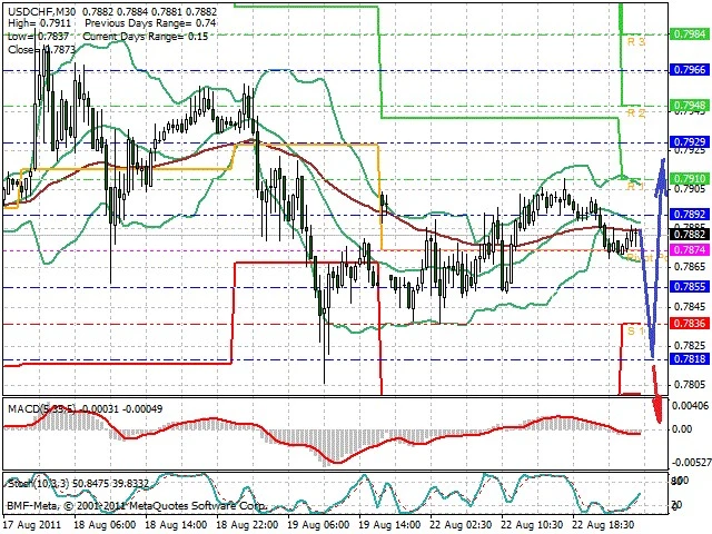 Předpokládaný pohyb pro dnešní den LONG. Případné vstupy do obchodu z hladiny 0.782 s předpokládaným cílem 0.792, případně až 0.8. Proražení hladiny 0.781 může vést k pohybu s pravděpodobným cílem 0.776 až 0.7695.
