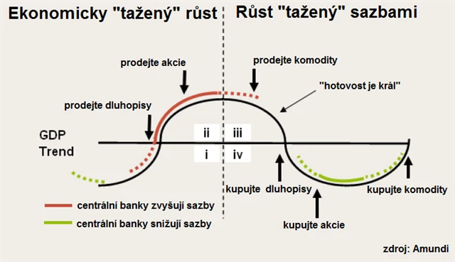 Korekce na akciových trzích byla rychlá a šla ruku v ruce se zájmem o komodity a dluhopisy. Trhy přešly z období, kdy bylo nejlepší držet hotovost, do fáze IV., ve které se do popředí znovu dostávají dluhopisy a akcie. Pro konec fáze IV. budou ale potřeba silné býčí signály z USA a Číny. Trhy jsou nyní v období, ve kterém je důležitá zvýšená opatrnost, a není proto na škodu se držet burzovního přísloví "nechytejte padající nůž", říkají v aktualizované studii investičních cyklů analytici z investiční společnosti Amundi, vlastníka v Česku dobře známé IKS-KB.