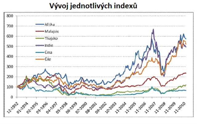 Za posledních pět let přinesly nejzajímavější zhodnocení tituly obchodované v rozvíjejících se zemích a zemích BRIC (Brazílie, Rusko, Indie a Čína). Absolutní výkonnost byla v obou případech mírně přes padesát procent (pozn. měřeno indexy MSCI Emerging Markets a MSCI BRIC v USD). Naproti tomu nejvýznamnější společnosti obchodované v USA přinesly na stejné periodě pouhé jedno procento. Ještě hůře dopadla Evropa, index MSCI Europe ztratil za posledních pět let téměř dvacet procent.