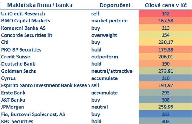 BUY (koupit), HOLD (držet), SELL (prodat), OVERWEIGHT (nadvážit v portfoliu), OUTPERFORM (očekávána lepší výkonnost než trh), UNDERPERFORM (očekávána horší výkonnost než trh)