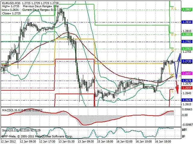Předpokládaný pohyb pro dnešní den LONG. Případné vstupy do obchodu z hladiny 1.268 s předpokládaným cílem 1.275, případně až 1.279. Proražení hladiny 1.268 může vést k pohybu s pravděpodobným cílem 1.2645 až 1.262.