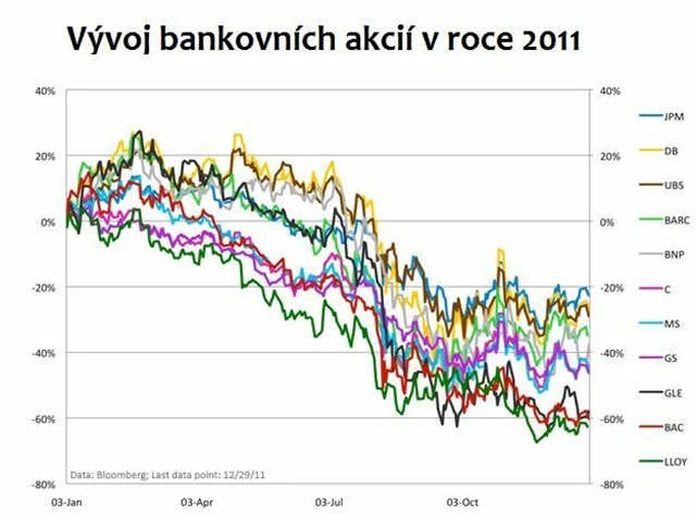 Bankovní akcie v roce 2011 skoro vykrvácely