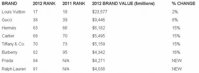 Nejhodnotnější luxusní značky pro rok 2012