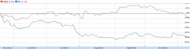 Náklady Facebooku stouply o 64 %, dvakrát rychleji než tržby. Přesto firma nadále vykazuje provozní marži přes 30 %. Dolarově vyjádřeno klesl provozní zisk Facebooku za třetí kvartál o 9 % (na 377 milionů USD) ve srovnání s loňskem. Facebook měl tedy ziskovější provozní model než LinkedIn, přesto je u LinkedInu patrné, že provozní marže zaznamenává na rozdíl od Facebooku rostoucí trend.