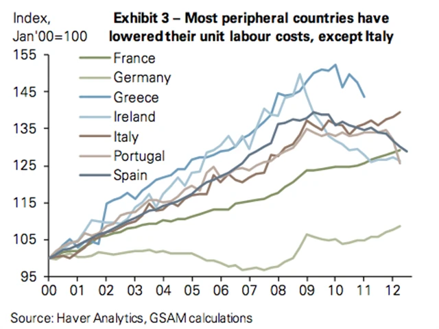 Evropa se jen sotva vyhne recesi. O'Neill oceňuje, že se většině Evropy daří snižovat náklady na práci, což zlepšuje její konkurenceschopnost. Výjimkou je Itálie, kterou příští rok navíc čekají volby. Ty nejdůležitější se ale budou konat v Německu.