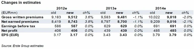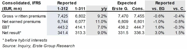 Solidní výsledky za letošní první tři čtvrtletí. Vynikající růst segmentu životního pojištění v Polsku byl opět hlavním tahounem růstu vybraného pojistného VIG, tento nárůst pojistného ovšem Erste nepovažuje za udržitelný. Celkově slabé prostředí pro segment životního pojištění vedl analytiky k mírnému snížení odhadů vybraného pojistného v následujících dvou letech.