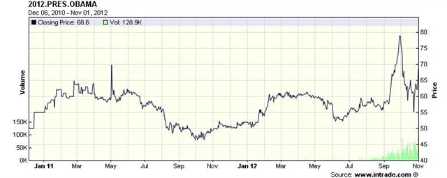 Občas se říká, že je ten či onen politik v kurzu, že jeho akcie stoupají nebo klesají. Je to většinou myšleno obrazně – nelze si přece koupit akcie fyzické osoby. V souvislosti s americkými prezidentskými volbami se ale možná někdo setkal s akciemi Obamy a Romneyho. Ano, jazykovému obratu o akciích politiků dává totiž nový rozměr burza Intrade.