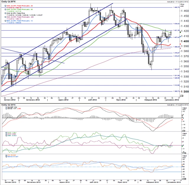 Situace na technických indikátorech nadále vypadá pozitivně, což bude nejspíše tlačit index výše. Očekáváme, že se během tohoto týdne dostane až k lokálnímu vrcholu ze začátku listopadu okolo 1 430 bodů.