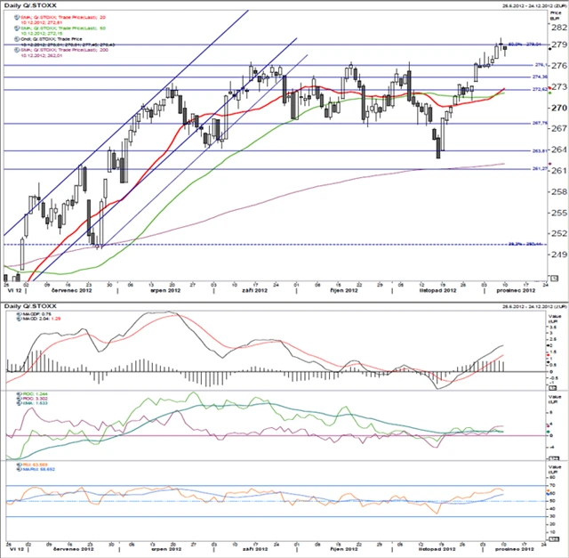Celkově jsou technické indikátory pozitivní a budou pravděpodobně tlačit index výše nad nejbližší úroveň odporu. Očekáváme, že index v průběhu tohoto týdne bude testovat Fibonacciho 50% úroveň zpětného pohybu. Její překonání by indexu poskytlo silnou základnu pro případný další růst, naopak pokles pod by mohl vyvolat korekci nedávných zisků.