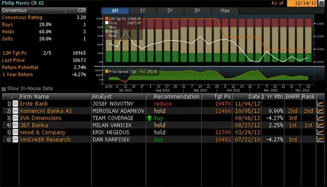 Jaký názor mají na akcie Pegas Nonwovens, Philip Morris ČR, Telefóniky a Fortuny domácí a zahraniční analytici? Jaké jsou jejich dvanáctiměsíční cílové ceny a jak znějí jejich aktuální investiční doporučení? Přehled investičních doporučení, jak je k 14. 12. 2012 shromáždila agentura Bloomberg.
