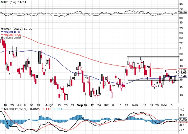 Index volatility VIX nic divokého nepředvedl, drží se v pásmu 16 až 19 a potvrzuje pro akcie neutrální, nerozhodný stav. Počkejme si na pokles pod 16.