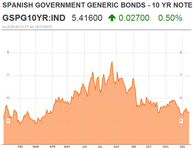 Zásluhu na tom má především Evropská centrální banka, která na začátku roku poskytla evropským bankám bilion eur v rámci dvou kol refinanční operace LTRO a v průběhu roku přislíbila nákupy dluhopisů kterékoli země, která požádá o pomoc evropské záchranné mechanismy.