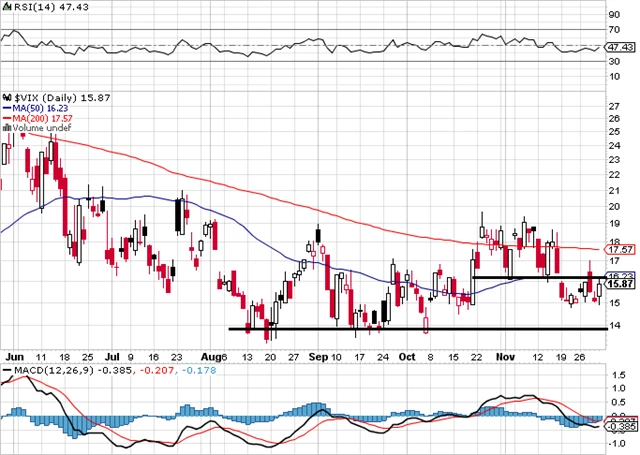 Index volatility VIX zůstal minulý týden prakticky beze změny a v pátek uzavřel pod 16 body. Tak nízko se drží dva poslední týdny. Pro akcie je to pozitivní signál.