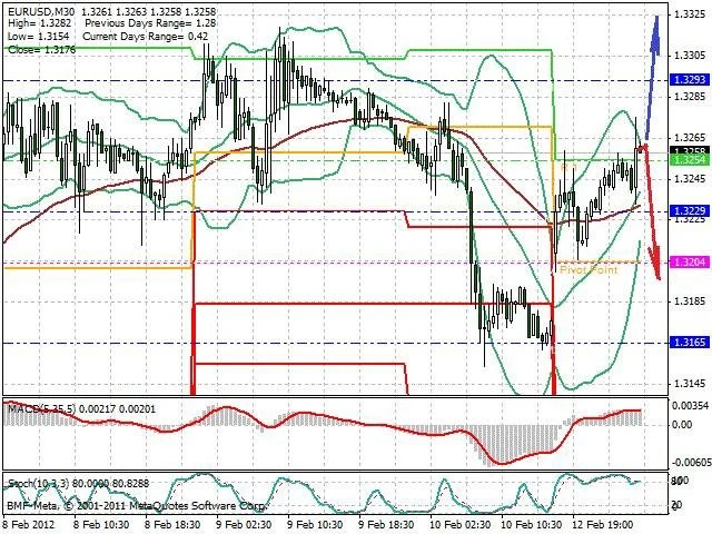 Předpokládaný pohyb pro dnešní den SHORT. Případné vstupy do obchodu z hladiny 1.326 s předpokládaným cílem 1.32, případně až 1.3155. Proražení hladiny 1.326 může vést k pohybu s pravděpodobným cílem 1.3325 až 1.3355.