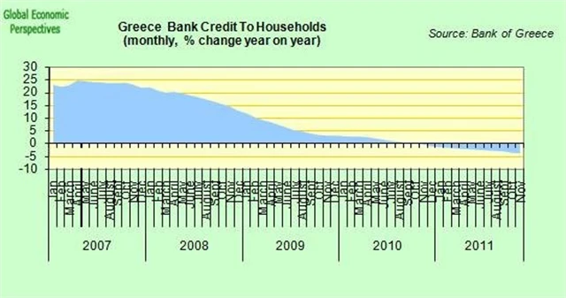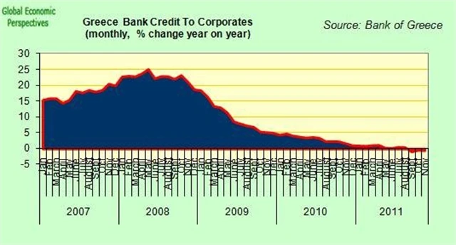 Ani repo operace na dodání tříleté likvidity od ECB nefungují tak, jak by měly - tedy ke stimulaci úvěrů v zemích, jako je Řecko, kde je malá solventní poptávka po úvěrech.