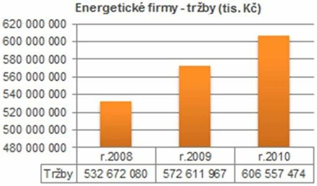 V rámci Odvětvové srovnávací analýzy Energetika bylo hodnoceno 124 nejvýznamnějších hráčů na trhu – od výrobců a dodavatelů energie po městské teplárny – v období let 2008 až 2010. Jejich celkové tržby kontinuálně rostly z 532,7 miliardy Kč v roce 2008 na 606,6 miliardy v roce 2010, tedy o téměř 14 %. Tržby se zvýšily více než polovině sledovaných energetických subjektů.