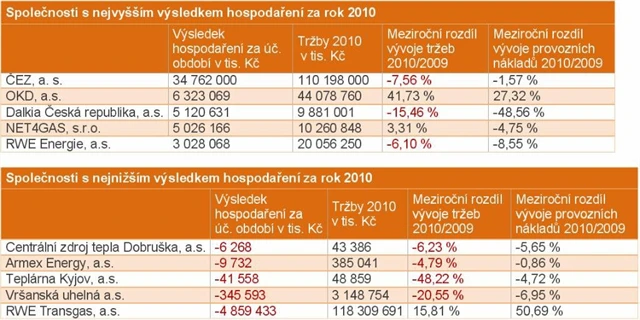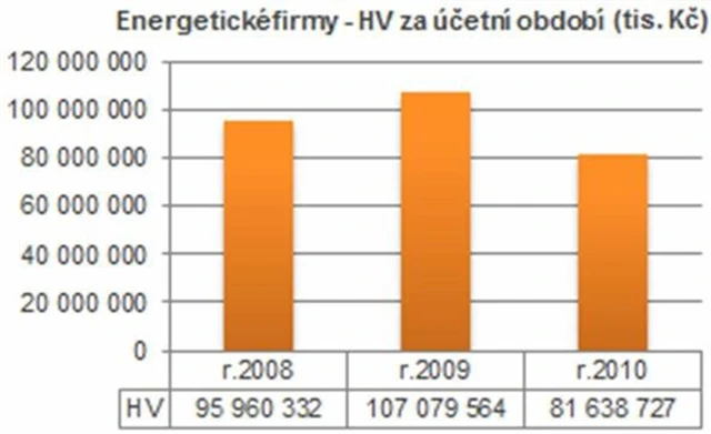 Ve sledovaném horizontu tří let (2008 až 2010) celkový hospodářský výsledek 124 nejvýznamnějších společností z oblasti energetiky klesl o 15 % z 96 miliard Kč v roce 2008 na 81,6 miliardy v roce 2010. Propad zisku souvisí hlavně s růstem výkonové spotřeby a náklady na prodej.