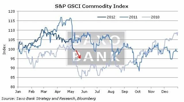 Opakuje se opět scénář posledních dvou let, kdy jsme viděli silné první čtvrtletí, po němž následoval slabý druhý kvartál? Při pohledu na graf je zřejmé, že pokles indexu S&P GSCI, kde mají velkou váhu energetické komodity, trvající v řadě osm dní, je nejhorší od roku 2008.