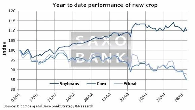 Obchodníci, spotřebitelé i producenti se pokoušeli celý rok vyrovnat s rozdílným vývojem všech tří komodit, kdy ceny nové úrody sójových bobů překonávají kukuřici a pšenici letos o 25 %. Sójové boby jsou jedinou komoditou, u které došlo v uplynulých dvou měsících ke zvýšení investic. Spekulativní dlouhé pozice jsou na rekordních úrovních a zvyšují riziko splasknutí bubliny. Ani pozitivní fundament pak nemusí stačit na odvrácení dočasné korekce, protože roste riziko zamykání zisků.