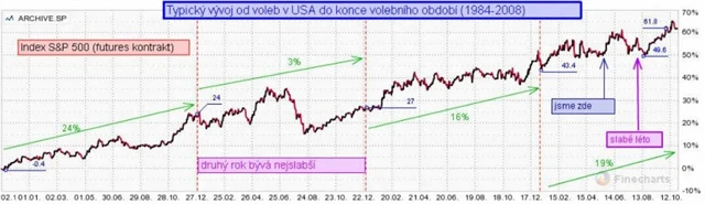 Volby v USA jsou v listopadu. Volební roky jsou historicky z pohledu výkonnosti akcií velmi silné, zejména v závěru roku. Nejslabší bývá naopak druhý rok prezidentského cyklu.