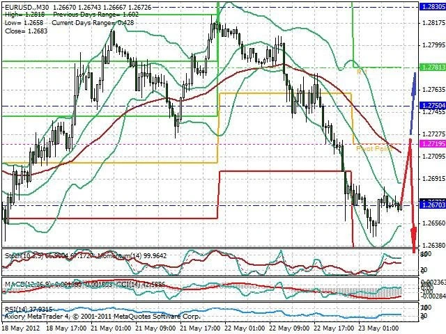 Předpokládaný pohyb pro dnešní den SHORT. Případné vstupy do obchodu z hladiny 1.2725 s předpokládaným cílem 1.264 případně až 1.26. Proražení hladiny 1.2735 může vést k pohybu s pravděpodobným cílem 1.278 až 1.2815.