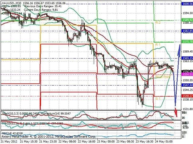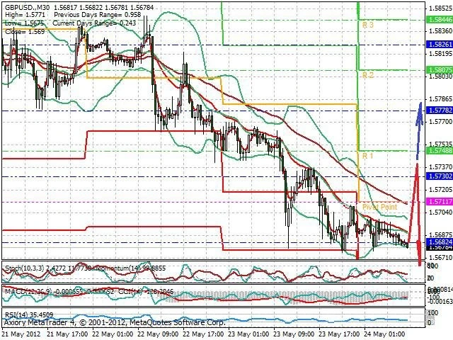 Předpokládaný pohyb pro dnešní den SHORT. Případné vstupy do obchodu z hladiny 1.574 s předpokládaným cílem 1.565, případně až 1.5625. Proražení hladiny 1.574 může vést k pohybu s pravděpodobným cílem 1.5785 až 1.582.