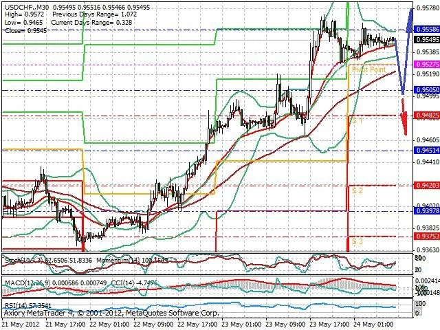 Předpokládaný pohyb pro dnešní den LONG. Případné vstupy do obchodu z hladiny 0.95 s předpokládaným cílem 0.9575, případně až 0.96. Proražení hladiny 0.95 může vést k pohybu s pravděpodobným cílem 0.9465 až 0.943.