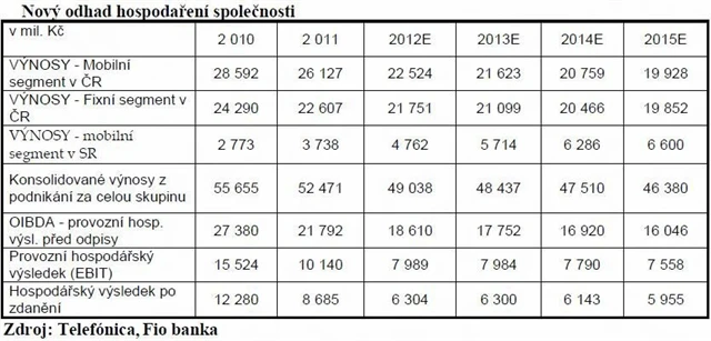 Na základě hospodářských výsledků za rok 2011, intenzivní konkurence a očekávaných aukcí kmitočtů snižujeme cílovou cenu společnosti Telefónica ze 434 Kč na 408 Kč, přičemž ponecháváme investiční doporučení na stupni "držet".