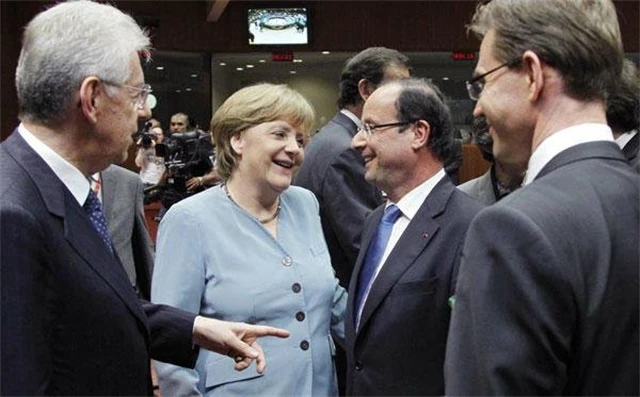 "Angela Merkelová slibuje, že udělá cokoli pro záchranu eura, ale vetuje vše, co by mohlo fungovat. Tvrdí, že brání německé zájmy. Evropa musí říci, že Německo blafuje. Na dalším summitu se mohou Francie, Itálie a Španělsko obrátit proti Německu s ultimátem: Buď Německo přistoupí na bankovní unii, eurobondy a kvantitativní uvolňování, nebo mu bude slušně nabídnuto vystoupení z evropské měnové unie. Bez Německa bude eurozóna politicky jednotnější a díky slabšímu euru a vyšší inflaci bude moci snadněji řešit své dluhy," píše Kaletsky.