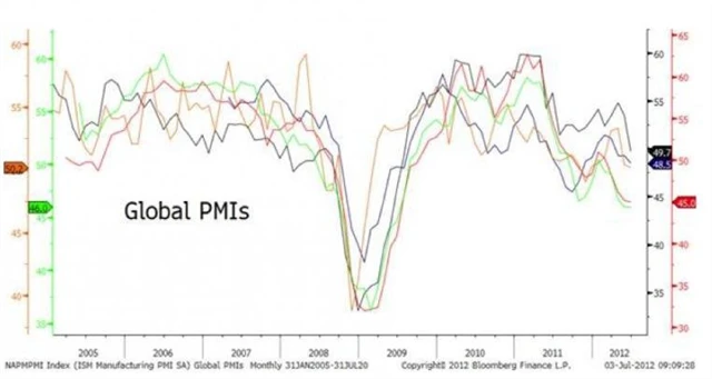 Tento ukazatel vyjadřuje, jak je na tom výrobní sektor v jednotlivých ekonomikách. Aktuální čísla ukazují na zpomalování výroby po celém světě. Nejspíš za tím stojí zpomalující světová poptávka.