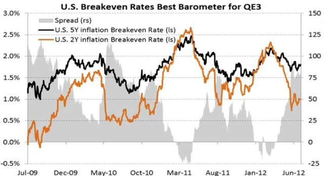 Lidé se mě často ptají, co bude spouštěčem dalšího kvantitativního uvolňování, a já jim říkám, aby sledovali bod zvratu na úrokových sazbách. V lednu Fed přišel s 2% inflačním cílem, pokud se dostanou inflační očekávání výrazně pod tuto hranici, bude to pro americkou centrální banku znamení, aby uvolnila měnovou politiku. Například v srpnu 2010, když šéf Fedu Ben Bernanke oznámil druhé kolo uvolňování, dvouletý úrok byl na 0,5 %, pětiletý na 1,2 %. Pokud se tedy opět dostaneme poblíž těmto úrovním, přijde další kvantitativní uvolňování.