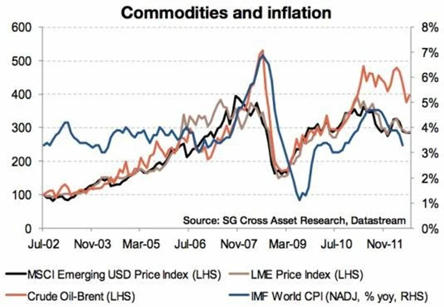 Deflační scénář se stal největším nebezpečím pro světové finanční trhy. Ve své zprávě klientům to napsal globální analytik Société Générale Patrick Legland. Nízké výnosy státních dluhopisů a klesající ceny komodit podle něj naznačují riziko deflace. Nízké ceny komodit ukazují na to, že se recese zdaleka nebude týkat jen periferních zemí eurozóny nebo eurozóny jako takové. Slabý ekonomický výhled Spojených států bude dále tlačit ceny komodit níže, poptávka z Číny svět už (zřejmě) znovu nezachrání.