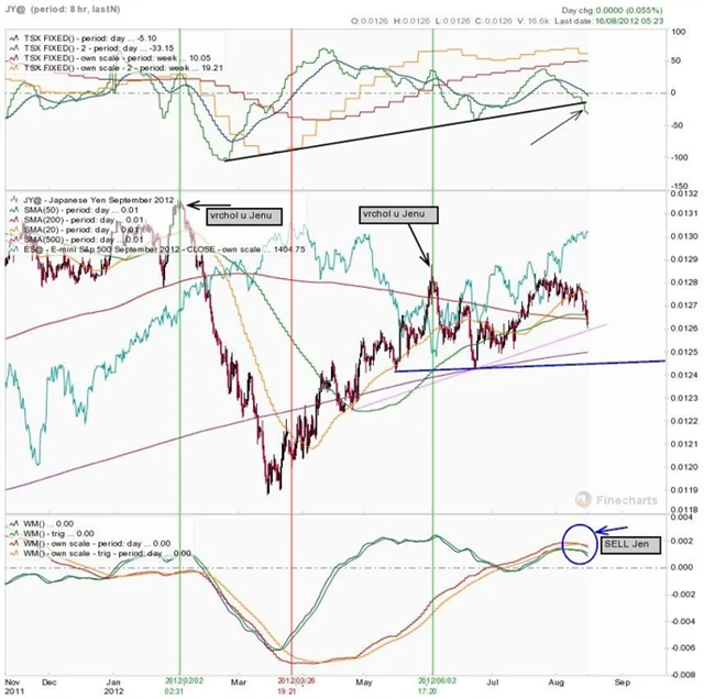 Cenový vývoj u japonského jenu (futures kontrakt)