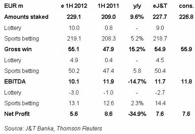 Objem sázek vzrostl o 10 % především díky růstu online sázení, loterijním hrám a fotbalovému mistrovství Evropy. Za výrazně nižším ziskem byly vysoké provozní náklady, hlubší než očekávaná ztráta v loterii a vyšší zdanění hazardu v České republice.