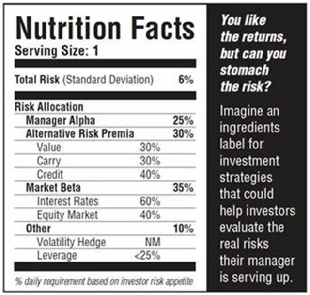 Na každé potravině dnes najdete štítek s energetickou hodnotou a doporučenými denními dávkámi jednotlivých živin. Nebylo by přínosné, kdyby se takto zprůhlednilo i investování? Každý investor by porozuměl tomu, jak velká rizika s aktivy ve svém portfoliu podstupuje, a mohl by si podle svého rizikového apetitu upravit jeho složení, podobně jako si sestavuje svůj jídelníček.