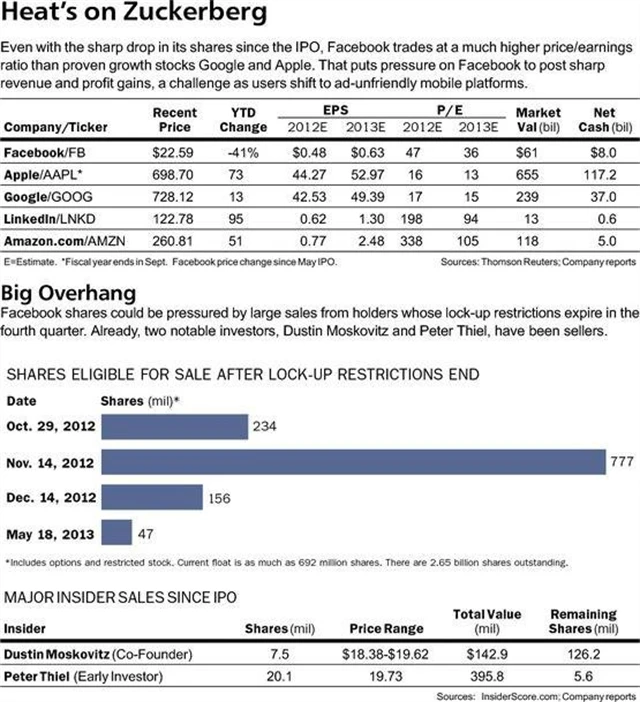 Akcie se obchoduje za 116násobek zisků. P/E valuace Googlu a Applu se pohybují jen kolem 20. Cena odpovídající desetinásobku tržeb Facebooku je přemrštěná, jde o dvojnásobek valuací Googlu.