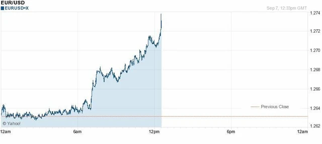 Celková míra nezaměstnanosti v USA překvapivě klesla na 8,1 %, nových míst mimo zemědělství však přibylo pouze 96 tisíc, v soukromém sektoru 103 tisíc. Negativní byla i revize údajů za červenec. V reakci na zprávu dále oslabuje dolar vůči euru.