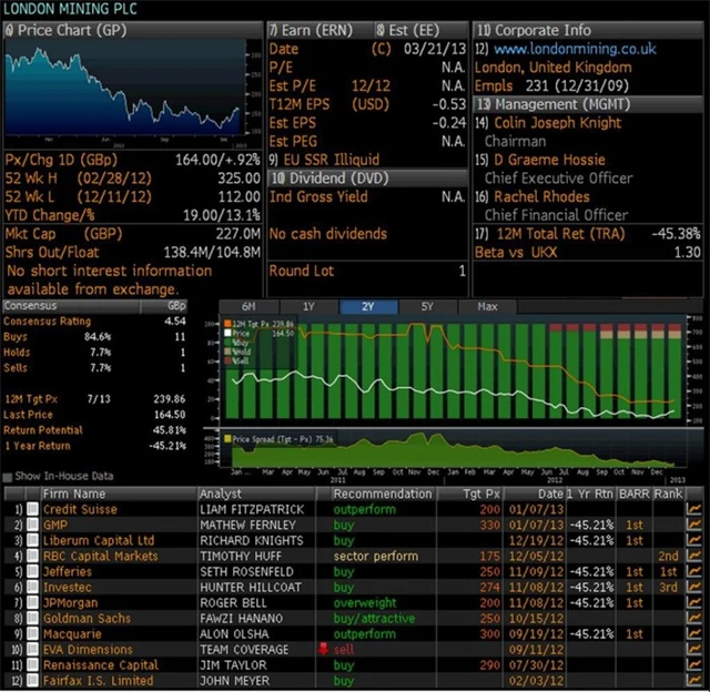 Cena železné rudy jde prudce nahoru po zářijovém propadu na tříleté minimum. Cena akcií London Mining tento trend zatím nenásleduje. Vzhledem k tomu, že Čína odebírá 65 % dodávek železné rudy a obavy ze zpomalení jejího ekonomického růstu odcházejí, měl by být letošní rok pro firmu příznivý.