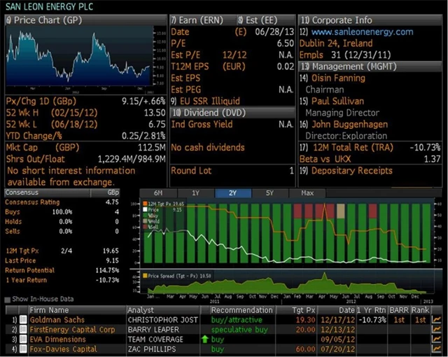 Pravděpodobně nejspekulativnějším z tipů na rok 2013 je San Leon Energy, která se v současnosti nachází v procesu fúze s Aurelian Oil and Gas. Obě společnosti se zabývají těžbou plynu z břidlic a jejich sloučení znamená, že budou držet největší plochu nalezišť v Polsku, kde jsou vyhlídky produkce těžby břidlicového plynu velmi slibné. Svá aktiva má rovněž v dalších evropských zemích a v severní Africe.