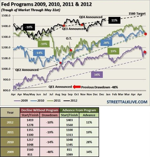 Pokud bude současné uvolňování podobně úspěšné, index S&P 500 má na to zdolat metu 1 560 bodů. Pokračoval by tak trend, kdy každé nové uvolnění politiky popohnalo akcie vzhůru o něco méně. A po skončení programu QE vždy přišlo nepříjemné vystřízlivění, a to jak na trhu, tak v reálné ekonomice.