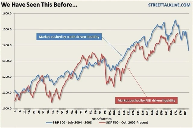Již jsme i na Investičním webu několikrát upozorňovali na to, že je současná akciová rally jako vejce vejci podobná dvěma předchozím tržním růstům. Podobnost současného býčího trhu s tím předchozím je dokonale ilustrativní. I v roce 2008 byl sentiment investorů velice býčí, zisky firem přitom již slábly, sebeuspokojení traderů a velkých bank bylo při pohledu do zpětného zrcátka alarmující, trhy byly překoupené a média optimistická. V roce 2008 se nepsalo o hrozbě recese, ačkoli právě začínala, akcie byly nejvíce doporučovaným investičním nástrojem.