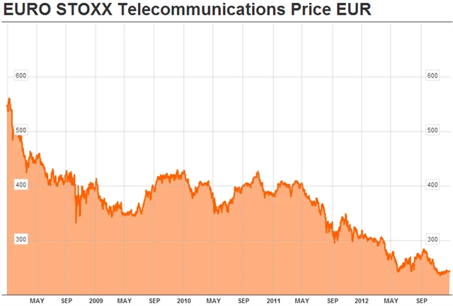 Telekomunikační a síťový sektor v Evropě bude zaostávat i v roce 2013 a letech následujících. Vinou absence růstových šancí, neefektivních struktur a politických vlivů vykazují tyto sektory z dlouhodobého hlediska podprůměrnou rentabilitu. V současnosti nejsou u těchto klesajících branží náznaky obratu k lepšímu. Negativní výnosy jsou v roce 2013 velmi pravděpodobné. Investoři by se měli vyhnout investicím do těchto firem.